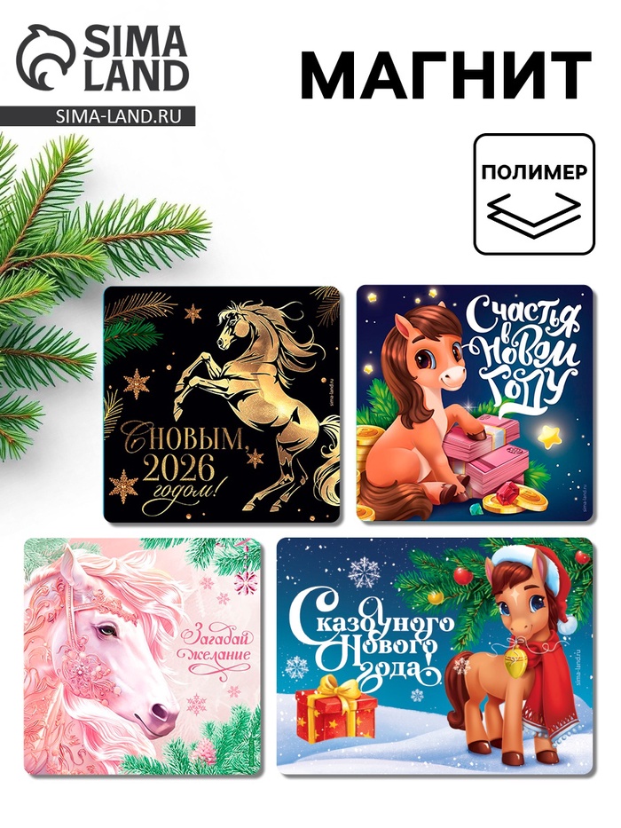Магнит на холодильник «С Новым 2026», микс 4 шт., 8 х 8 см