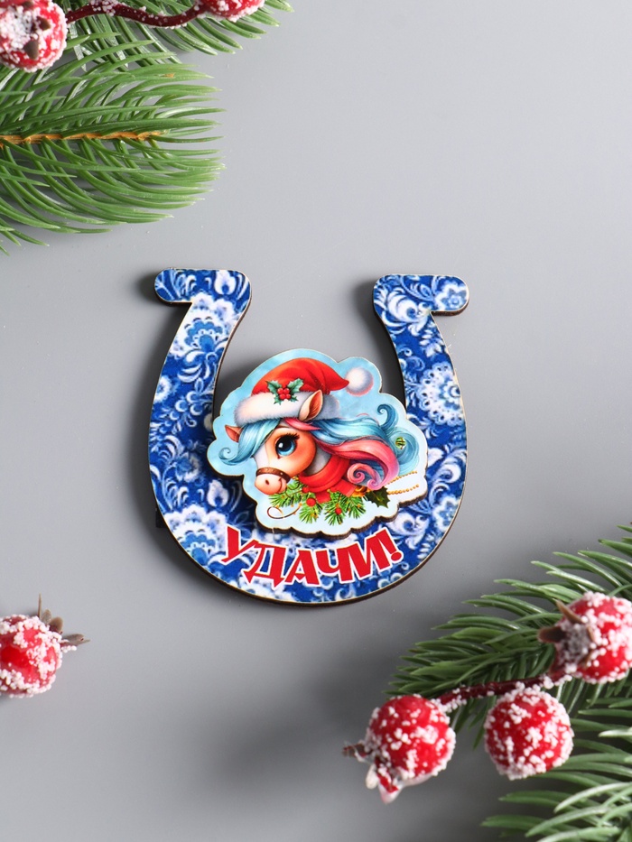 Магнит новогодний 3D «Удачи», размер магнита 6×6.5 см