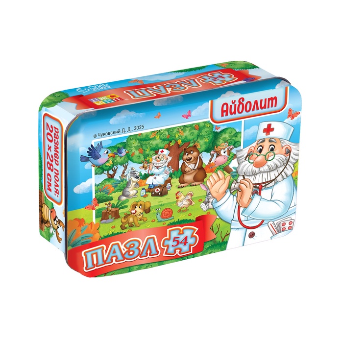 Макси-пазлы в металлической коробке «Айболит», 12 пазлов, 24 детали