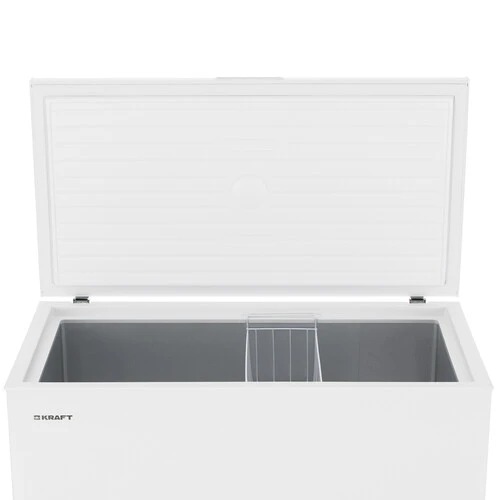 Морозильный ларь Kraft BD (W)-340RX белого цвета объемом 340 л подходит для замораживания и хранения до 300 кг мяса, рыбы, овощей, а также готовых блюд. Модель подойдет для установки в коммерческих помещениях, где нужен постоянный доступ к свежим продуктам. Модель работает в диапазоне температур от +5° до – 24° C и может замораживать до 13.5 кг продукции в сутки, это позволяет хранить даже большое партии еды.