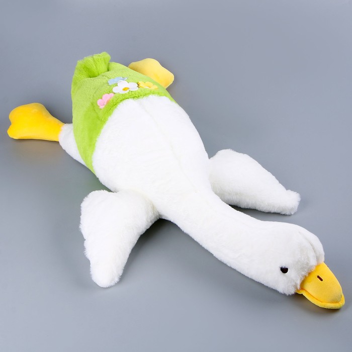 Мягкая игрушка «Гусь в штанах» — забавный и трогательный персонаж, который способен украсить любую детскую комнату. Удлинённое тело, мягкие крылья и расслабленная поза делают гуся особенно уютным. Яркие зелёные «штанишки» с вышитыми цветочками добавляют образу игривости и делают игрушку легко узнаваемой.