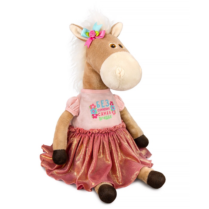 Милая лошадка Лурдес Шелдон — это очаровательный персонаж, который станет любимым другом для вашей дочери или стильным аксессуаром в интерьере. Её мягкий бежевый мех и нежный наряд создают уютную атмосферу, а удобный размер делает её идеальным спутником для игр дома или в качестве декора.