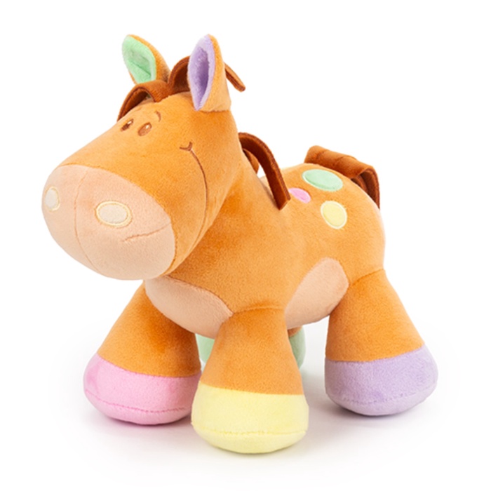 Мягкая лошадка Тося — обаятельная игрушка, которая сразу вызывает симпатию. Её добродушный вид и сочетание оранжевого с пастельными оттенками делают образ уютным и современным. Лошадка подойдёт и для игр, и как элемент декора в детской комнате.