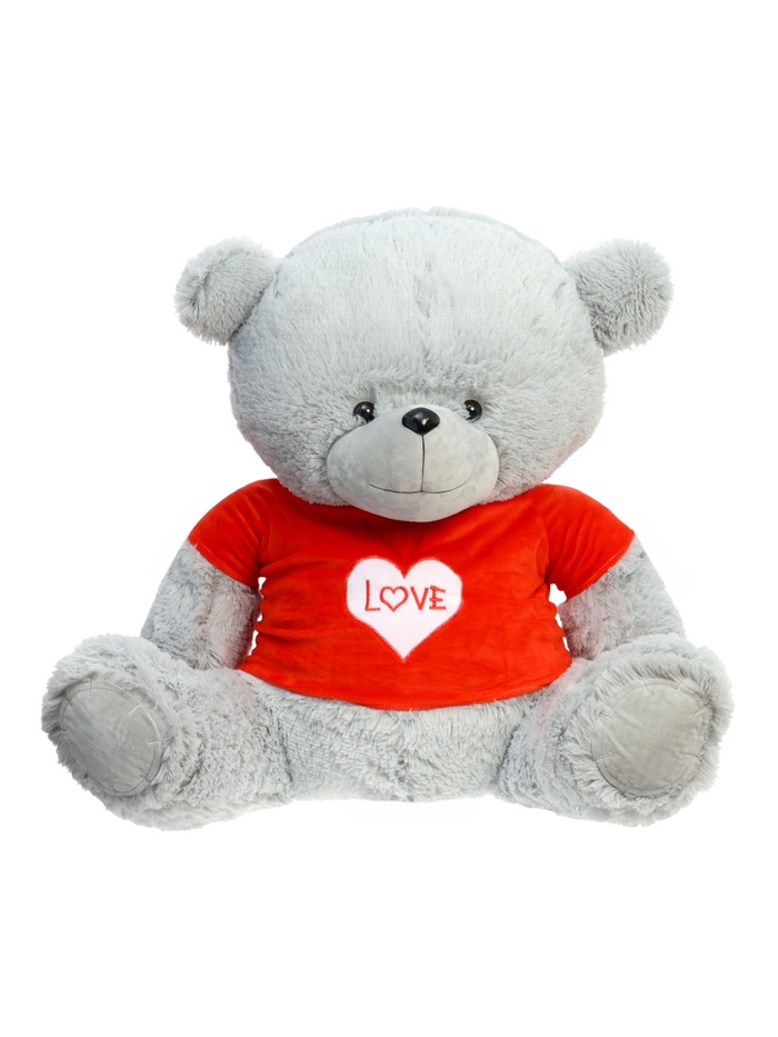 Мягкая игрушка «Медведь Тед» в кофте — уютный серый мишка с доброй мордочкой и яркой красной кофтой с надписью «Love». Контраст одежды на фоне мягкого плюша делает образ выразительным и эмоциональным, а сам мишка выглядит тёплым, дружелюбным и очень «обнимательным».