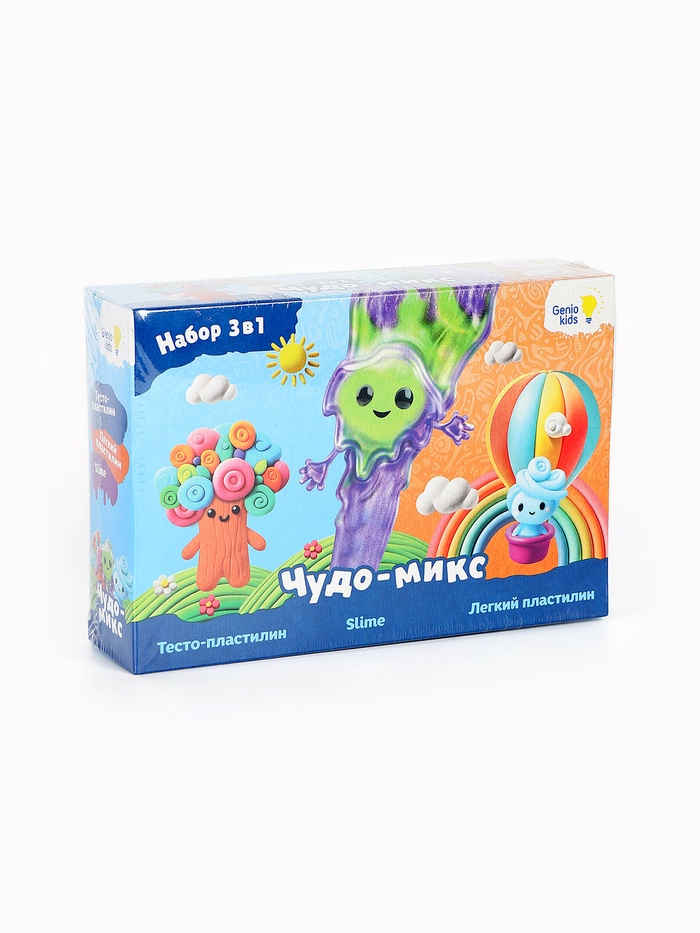 В наборе ребёнок найдет тесто - пластилин, лёгкий пластилин и двухцветный слайм.