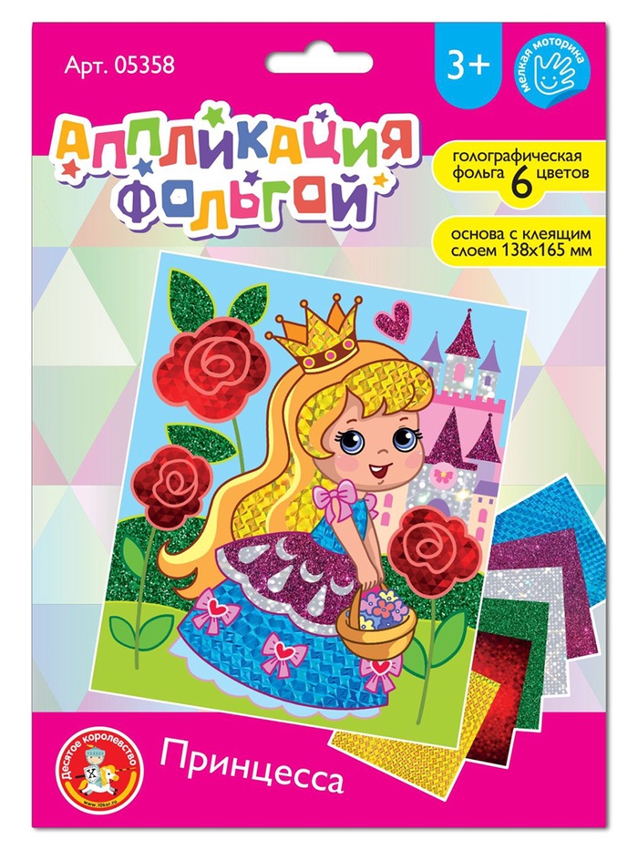 Набор для творчества. Аппликация фольгой "Принцесса" размер 138х165 мм (конверт, 6 цв)