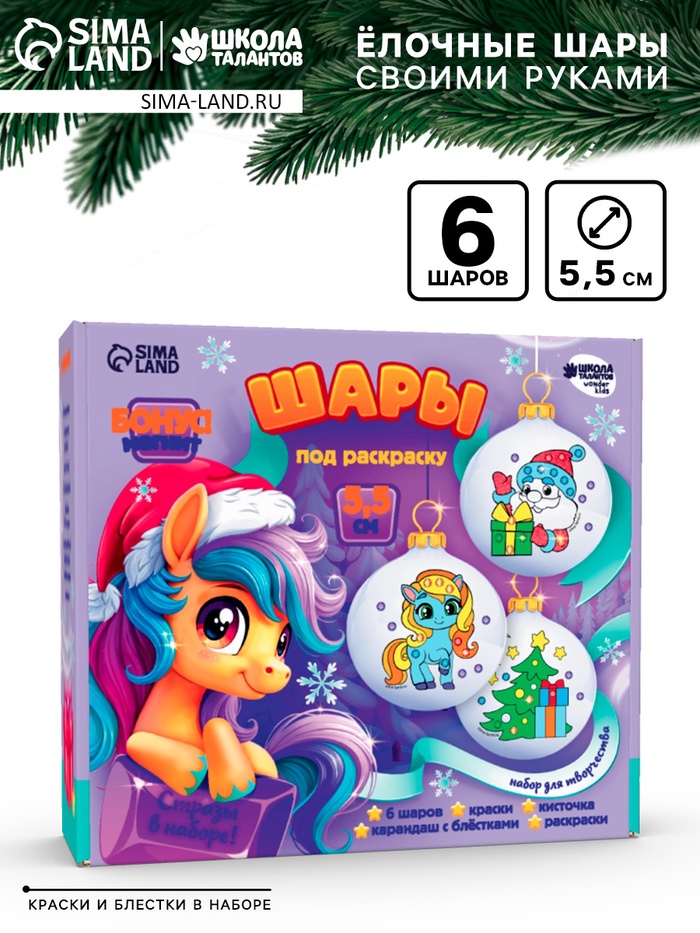 В наборе шары с нанесённым рисунком. Вам остаётся лишь проявить фантазию и раскрасить их на свой вкус. Набор шаров также станет прекрасным подарком друзьям и близким.