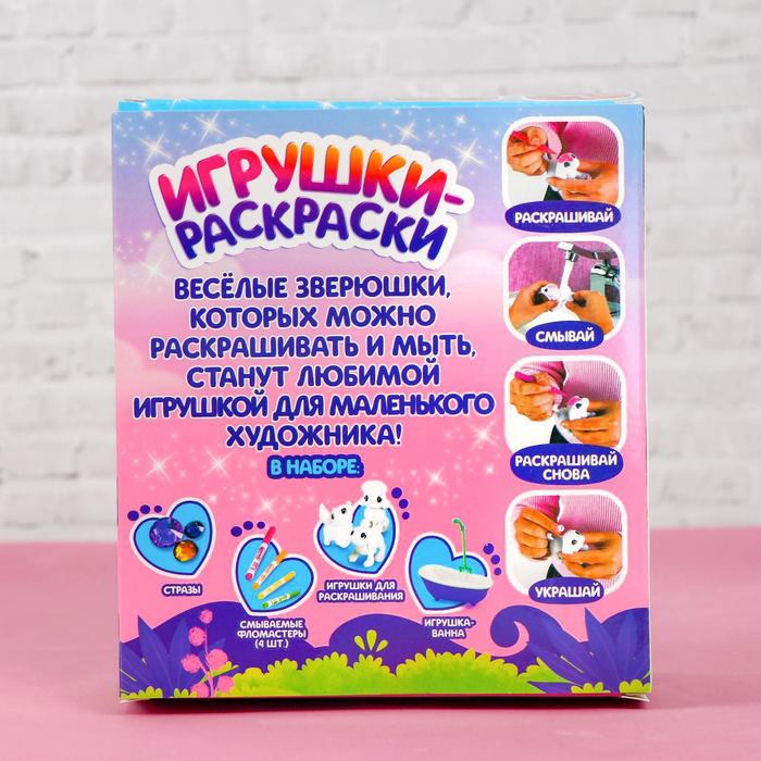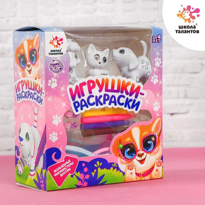 С набором юные художники смогут расписать фигурки кошечки и зайчика на свой вкус! В комплект входит всё необходимое для раскрашивания. После того, как ребёнок изготовит зверюшек, с ними можно будет играть, а затем смывать и раскрашивать по-новому!