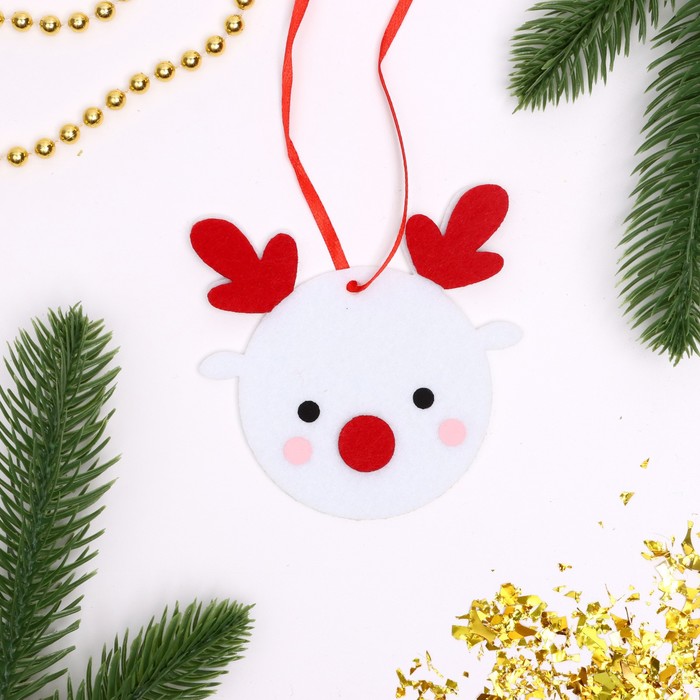 В наборе: элементы из фетра, лента для подвеса, изображение готовой поделки.