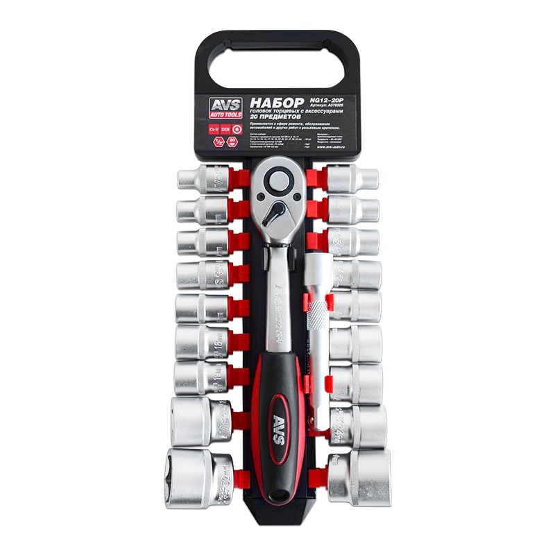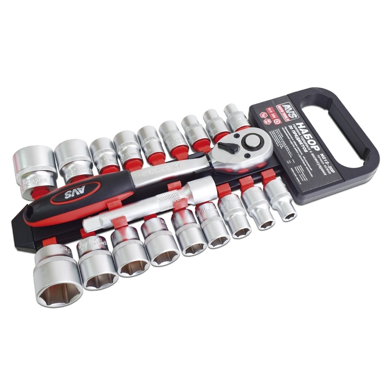 Набор торцевых головок с аксессуарами AVS 1/2DR 8-32 мм 20 предметов NG12-20P A07830S упрощает работу с резьбовым крепежом.
