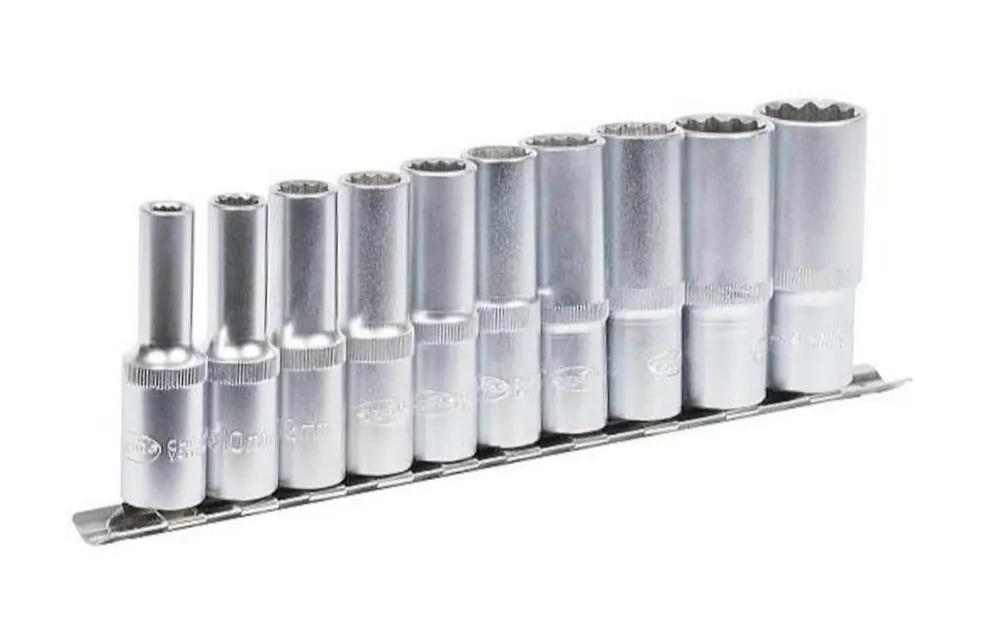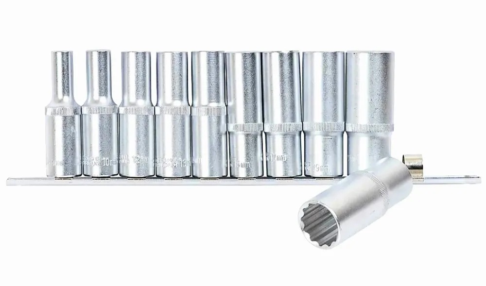 Набор головок АвтоDело применяется для работы с крепежом, головки изготовлены методом холодной штамповки из стали CRV. Рабочий профиль головок - 12-ти гранный, присоединительный квадрат 1/2" Набор укомплектован стальной рейкой для крепления головок.