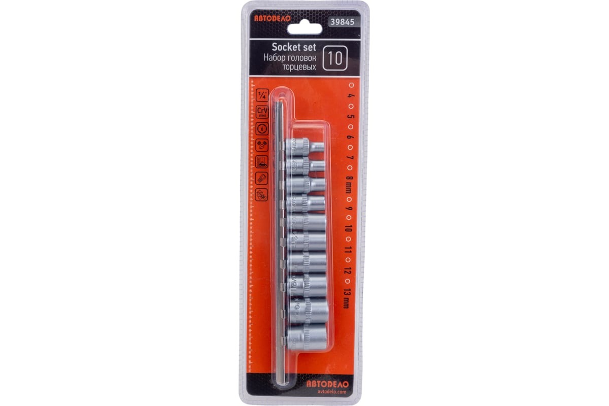 Набор головок торцевых 1/4" АвтоDело предназначен для работы с крепежом имеющим рабочий профиль внешний шестигранник.