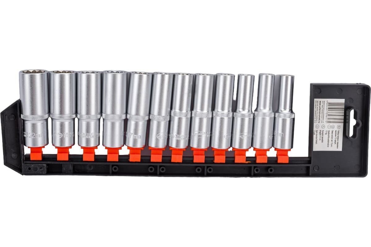 Рабочий профиль головок - двенадцатигранный. Набор укомплектован пластиковым холдером с лепестковыми держателями головок. Защищены от коррозии хромированием с эффектом матовой поверхности.
