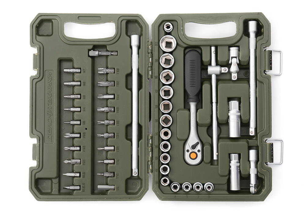 Набор головок и принадлежностей 3/8, 45 предметов Дело Техники 610745 представлен в оптимальной комплектации и имеет самый популярный типоразмер моделей.