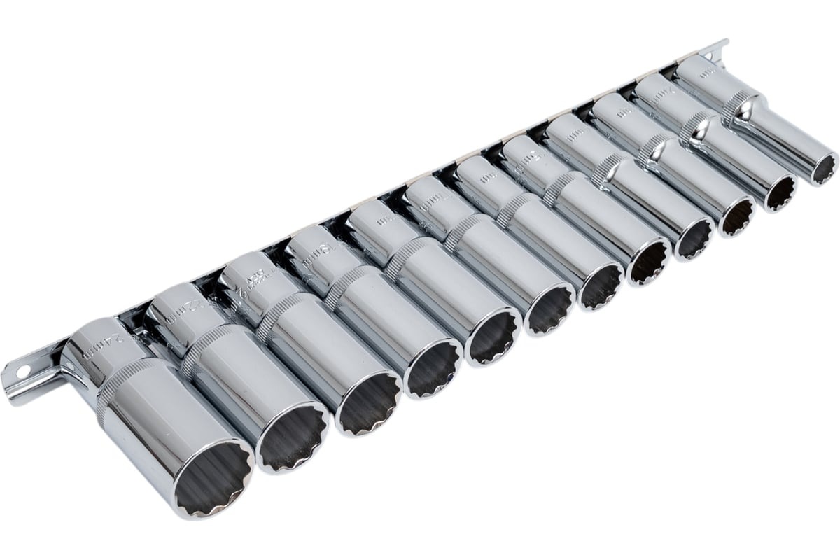 Двенадцатигранная торцевая головка увеличенной длины. Применяется при работе с крепежом на относительно высоких шпильках и заглубленных деталях. Двенадцатигранные головки удобнее в применении по сравнению с 6-гранным, так как какой профиль предоставляет большую свободу для позиционирования головки на крепеже. Однако, он обладает меньшим по площади пятном контакта и воздействие на крепеж, особенно с высокой нагрузкой, может повредить грани крепежной детали, что в сочетании с большим количеством концентраторов напряжения несколько ограничивает применяемые максимально допустимые нагрузки, опять же, по сравнению с 6-гранными головками.