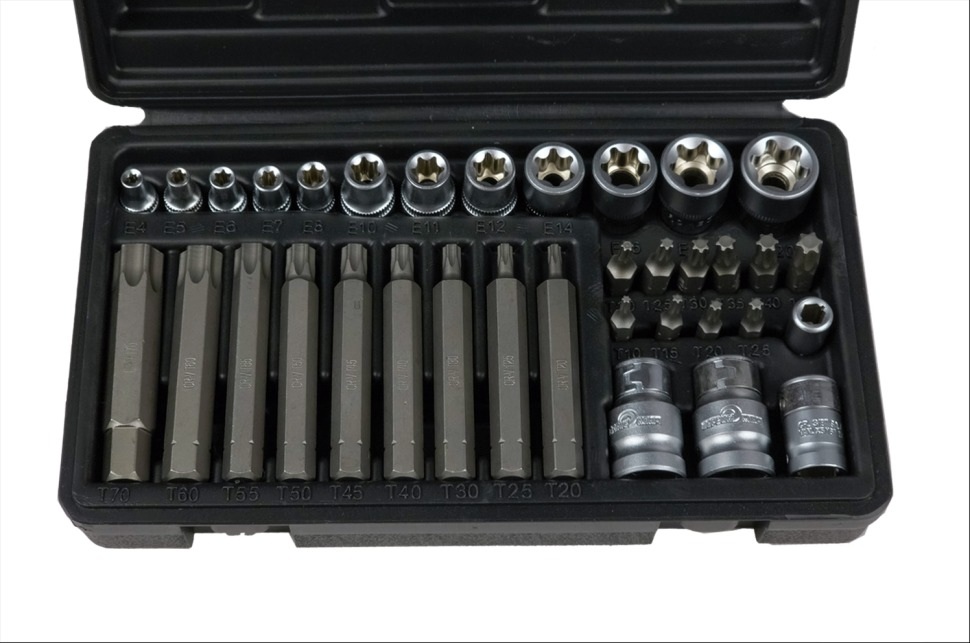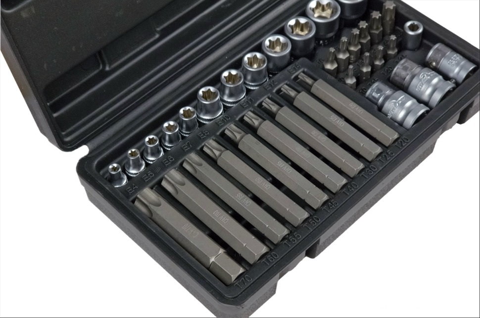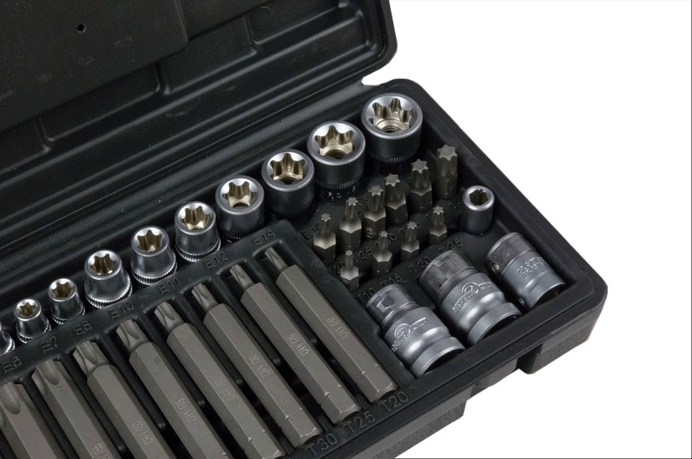 Все элементы набора изготовлены из высококачественной стали 50bv30, которая обладает высокой прочностью и износостойкостью. Звездочки-головки и биты имеют точную геометрию и надежно фиксируются на крепеже, предотвращая соскальзывание и повреждение. Держатели для бит имеют быстросъемное кольцо, которое облегчает смену насадок. Набор поставляется в удобном кейсе, который обеспечивает порядок и защиту инструментов. Габариты набора - 230*135*55 мм.