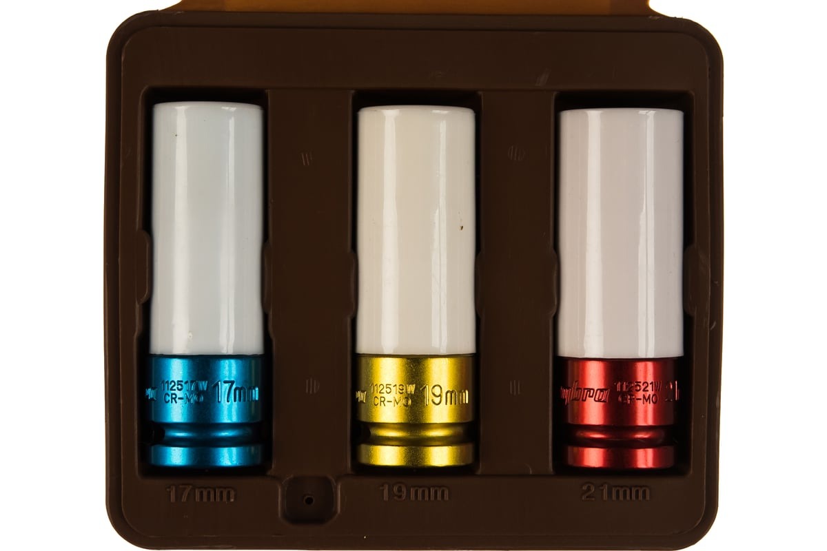 Применяются для проведения работ с механизированным инструментом ударного действия, при обслуживании легкосплавных колесных дисков легковых автомобилей. Устойчивы к высоким динамическим нагрузкам. Головка торцевая для ударного инструмента 1/2"DR, 17 мм. Головка торцевая для ударного инструмента 1/2"DR, 19 мм. Головка торцевая для ударного инструмента 1/2"DR, 21 мм.