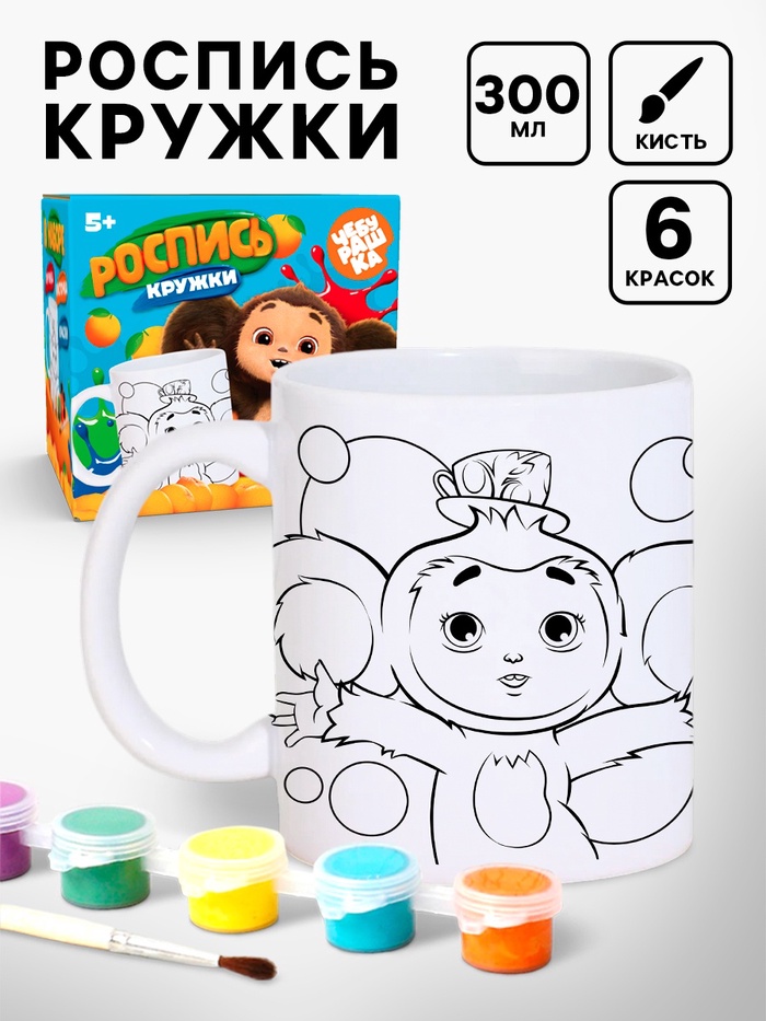 Набор «Кружка под раскраску “Апельсиновое чаепитие”», 320 мл, с Чебурашкой — творческий подарок для ребёнка! В комплекте: керамическая кружка с контурным рисунком, краски и кисть. Ребёнок раскрашивает на своё усмотрение, затем фиксирует рисунок (в духовке) — и получает уникальную, долговечную кружку. Развивает фантазию, мелкую моторику и дарит радость творчества!