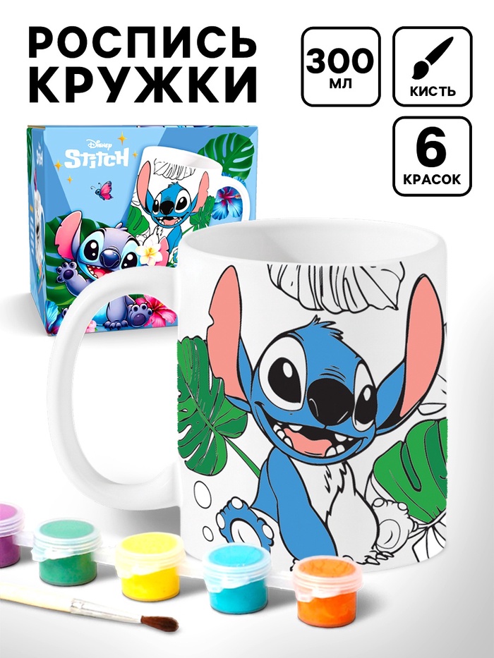 Набор для творчества: кружка под раскраску «Гавайские приключения», Стич — яркое творческое занятие и подарок! Керамическая кружка (320 мл) с контурным рисунком, кистью и красками. Ребёнок раскрашивает кружку по фантазии, затем фиксирует рисунок в духовке — и получает уникальную, долговечную посуду с океанским настроением! Развивает воображение, мелкую моторику и дарит ощущение летнего праздника — даже зимой.
