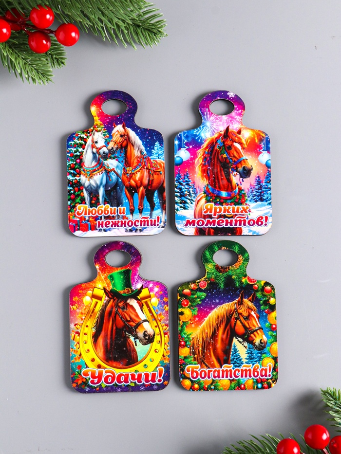 Привлеките энергию года Лошади в свой дом! Набор магнитов «Разделочная доска с конём» — это стильный и глубоко символичный аксессуар для вашей кухни. Четыре деревянных магнита не просто украшают холодильник, но и создают особую атмосферу, наполненную теплом и добрыми пожеланиями.
