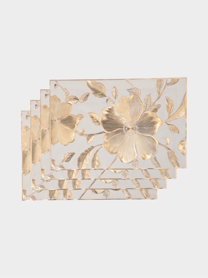 Набор салфеток для стола Доляна «Цветы», 44,5×30 см, 4 шт, ПВХ, цвет золото