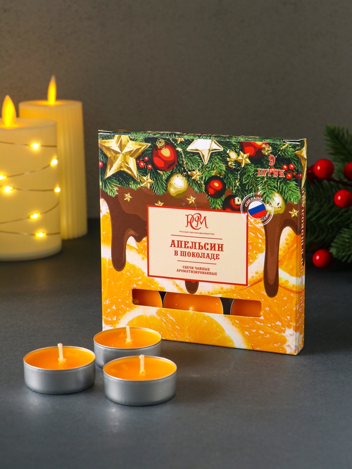 Создайте праздничную атмосферу с тёплым ароматом цитрусов! Набор ароматических свечей «Апельсин в шоколаде» — это девять свечей в элегантных гильзах для создания уюта в доме. Композиция сочетает сочные ноты апельсина со сладкими оттенками шоколада, наполняя пространство праздничным настроением.
