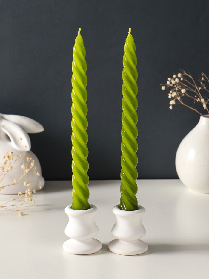 Набор свечей витых, 2,3х 24,5 см, 5 ч, 50 г, 2 штуки, оливковый
