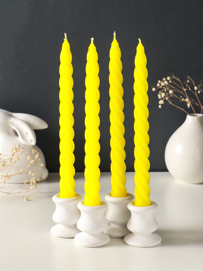 Набор свечей витых, 2,3х 24,5 см, 5 ч, 50 г, 4 штуки, жёлтый