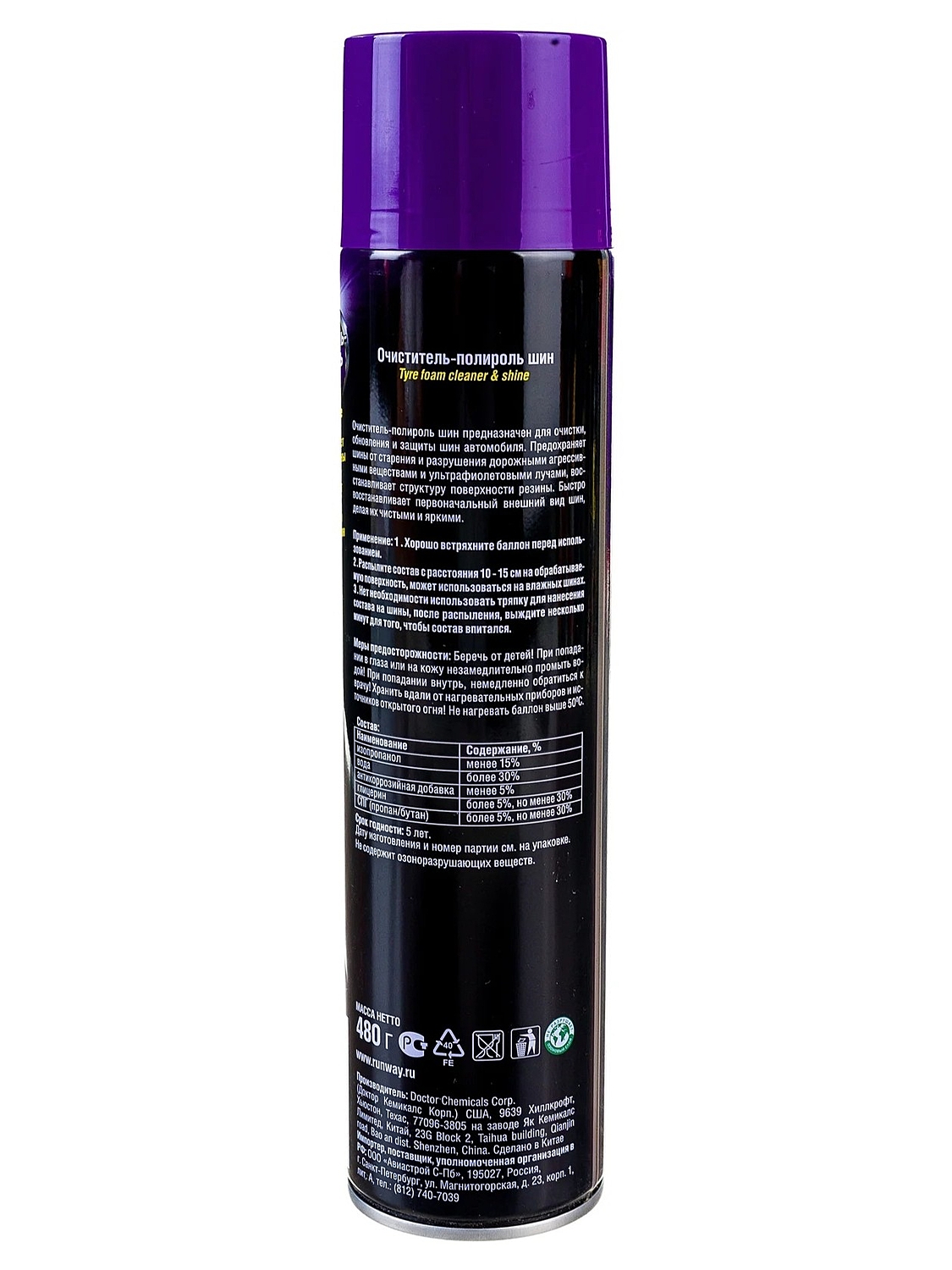 Очиститель-полироль шин Runway RW6127 предназначен для очистки, обновления и защиты шин автомобиля.