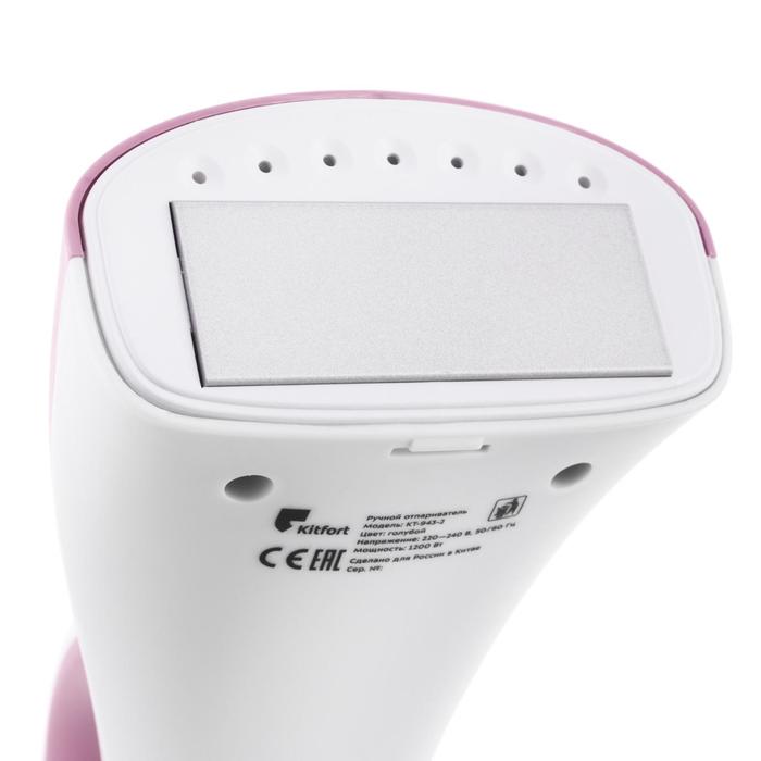 Отпариватель Kitfort КТ-943-1, ручной, 1200 Вт, 0.14 л, 2 в 1, 25 г/мин, бело-розовый