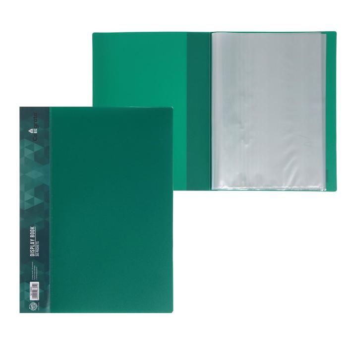 Папка 30 прозр вкладышей А4 15 мм, 600 мкм Сalligrata", карман на корешке, зелёный