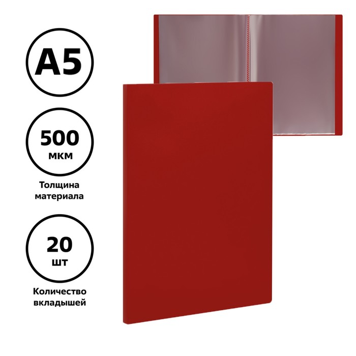 Папка с 20 вкладышами А5, 500 мкм, Calligrata, текстура "песок", красная