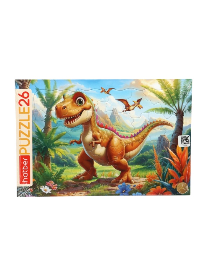 Мощные лапы, дружелюбная улыбка и яркие краски — ребёнок сразу узнаёт любимого динозавра и с удовольствием собирает его по крупным деталям. Всего 26 элементов: достаточно для развития внимания, но без разочарований. Готовый пазл вызывает гордость и желание рассказать: «Это тираннозавр!»