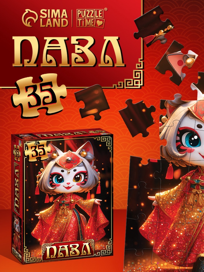Мягкие линии, тёплые цвета и улыбающаяся кошечка — картинка, которая располагает к игре с первого взгляда. Ребёнок берёт крупные детали, ищет подходящие края и постепенно открывает целую картинку. Всего 35 элементов: достаточно для интереса, но не слишком сложно для первых самостоятельных сборок.