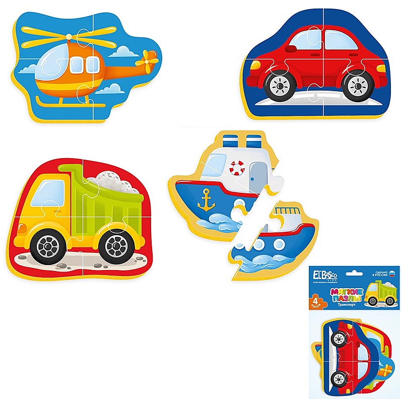 Маленьким любителям сборных картинок обязательно понравится этот красочный пазл. Детали пазла крупные - ими удобно манипулировать малышам. Малыши в процессе игры соберут 4 картинки транспорта и познакомятся с их названиями. Пазл представляет собой картинку, состоящую из некрупных деталей разной формы, соединяющихся замком, который делает конструкцию прочной. Цель - собрать их все воедино, чтобы получилась цельная картина. Каждая деталь имеет индивидуальную форму и легко соединяется с другой. Сборка пазла прекрасно развивает образное и логическое мышление, мелкую моторику, умение видеть часть и целое и сопоставлять их, также способствует развитию усидчивости, концентрации внимания, памяти. Все элементы пазла выполнены из высокопрочных и износостойких материалов, обеспечивающих многократность сборки и стойкость окрашивания поверхности без последующего выгорания и выцветания.