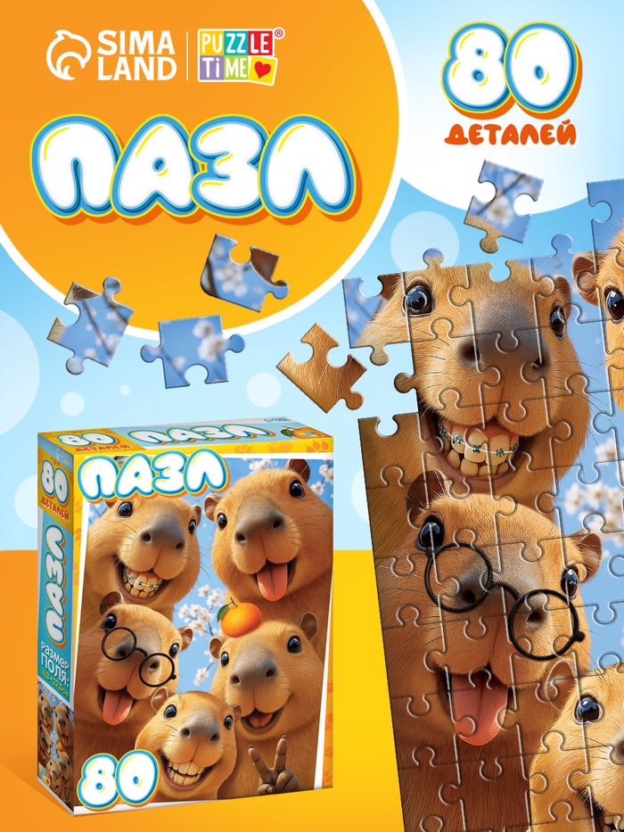 Пазл «Веселые капибары», 80 деталей