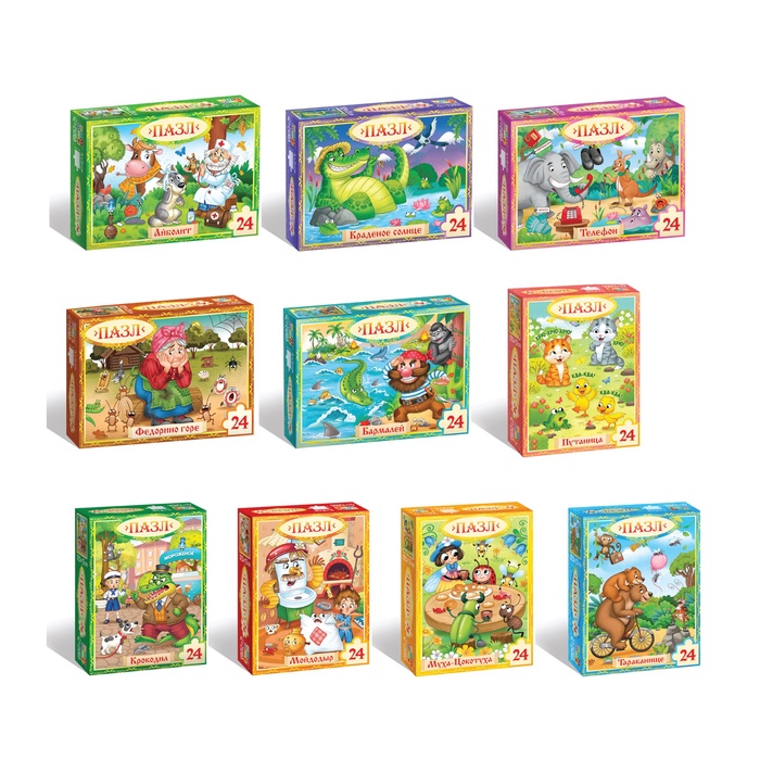 Пазлы «Сказки Корнея Чуковского» — это набор из 10 головоломок, каждая из которых состоит из 24 деталей. Этот классический набор создан для детей от 3 лет и перенесёт ребёнка в удивительный мир любимых сказок Корнея Чуковского. Собирая пазлы, малыш создаст яркие картинки с героями, которые станут частью семейного досуга или украсят детскую комнату.