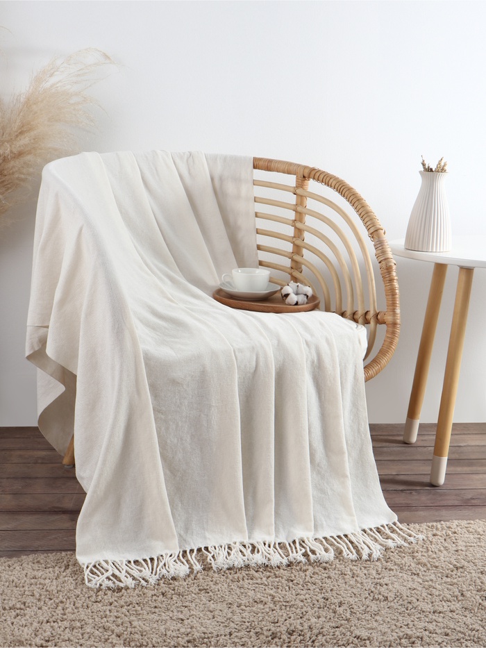 Молочный цвет пледа легко сочетается с другими элементами декора, придавая пространству легкость и элегантность. Он прекрасно дополняет как классические, так и современные интерьеры, создавая гармоничный образ.