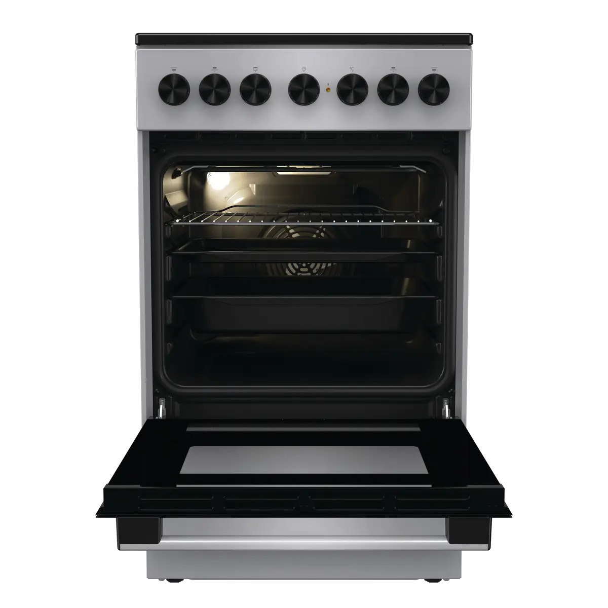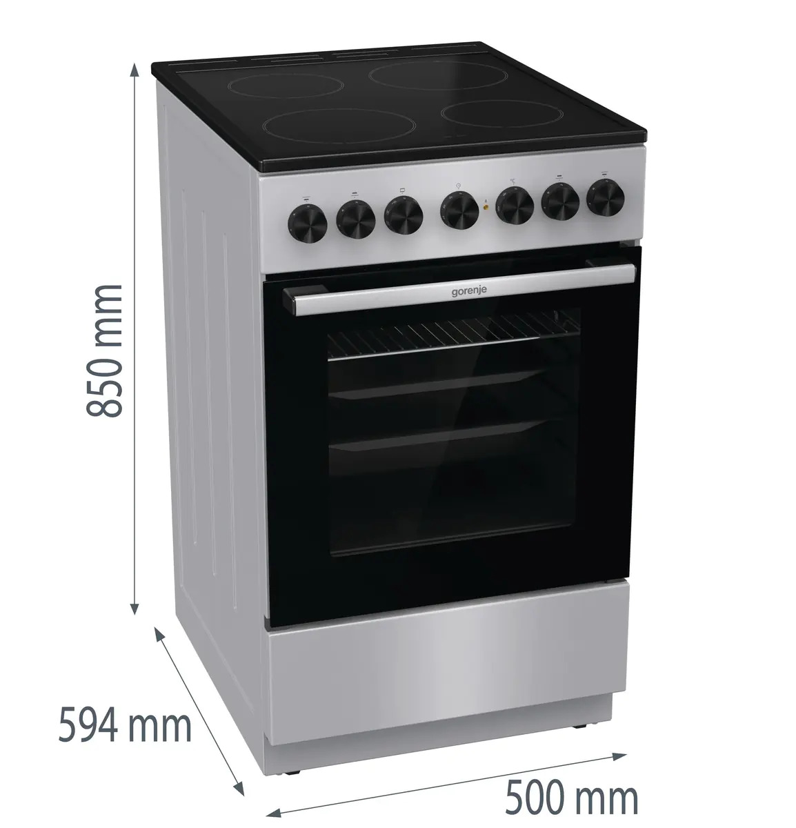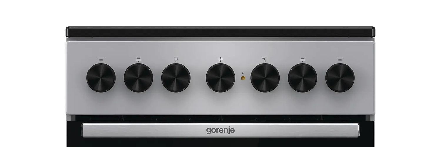 Электрическая плита Gorenje GEC5B41SG выполнена в сочетании чёрного и серого. Такой вариант идеален для современных помещений. В нижней части корпуса имеется специальный ящик для хранения сковородок и противней. Так вся посуда будет под рукой. Выставить настройки можно с помощью поворотных регуляторов. Они отвечают за конфорки варочной панели, температуру, режимы работы духового шкафа, а также таймер. Он звуковым сигналом сообщит об истёкшем времени, а также автоматически отключит прибор.