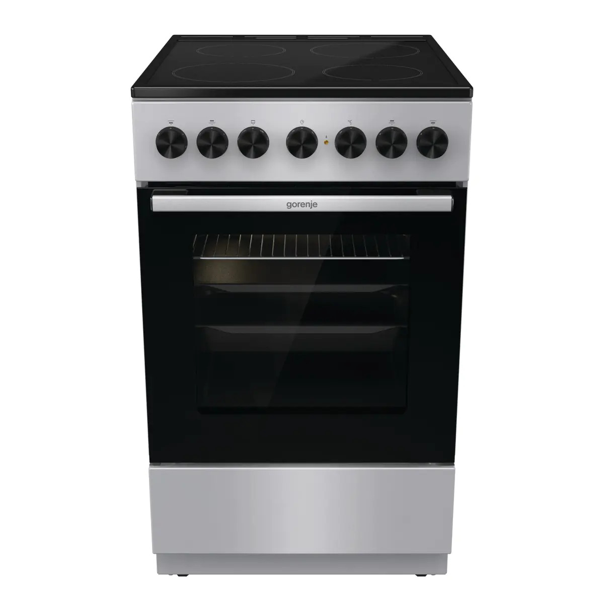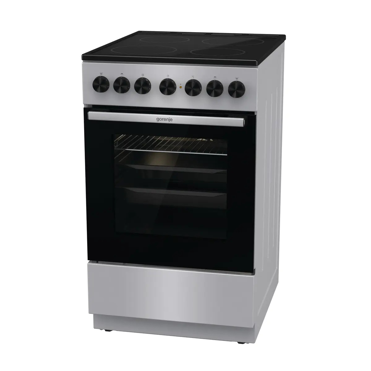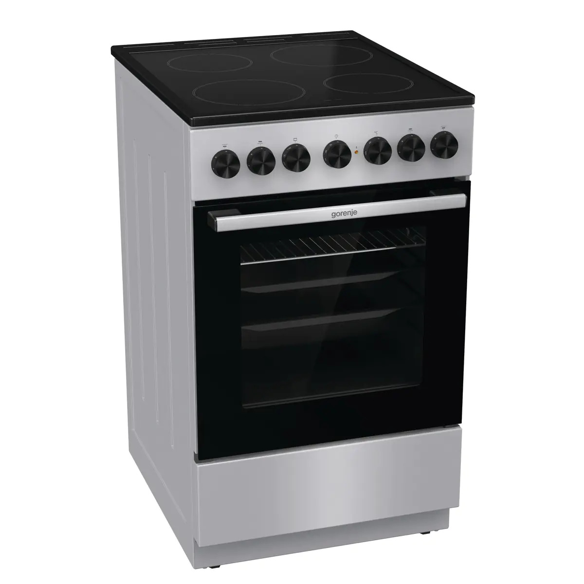 Электрическая плита Gorenje GEC5B41SG выполнена в сочетании чёрного и серого. Такой вариант идеален для современных помещений. В нижней части корпуса имеется специальный ящик для хранения сковородок и противней. Так вся посуда будет под рукой. Выставить настройки можно с помощью поворотных регуляторов. Они отвечают за конфорки варочной панели, температуру, режимы работы духового шкафа, а также таймер. Он звуковым сигналом сообщит об истёкшем времени, а также автоматически отключит прибор.