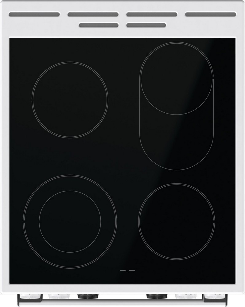 Электрическая плита Горенье GECS5C70WA имеет варочную поверхность из стеклокерамики, которая легко очищается, прекрасно выглядит и отличается прочностью. 4 зоны нагрева с высокоэффективными элементами Hi-Light имеют разный диаметр и мощность, что позволяет использовать их для различных целей. Причем одна из конфорок имеет контур расширения для крупных кастрюль, а еще одна способна превращаться в овал, так что готовить можно даже в утятнице, не ограничивая себя в выборе посуды.