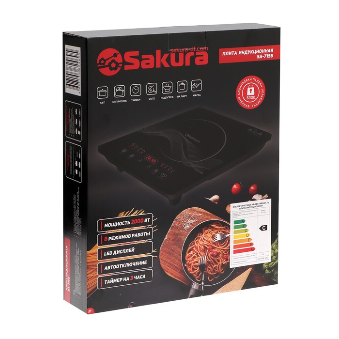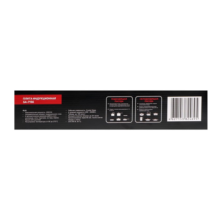 Плитка индукционная SA-7156, 2000 Вт, 1 конфорка, таймер, чёрная