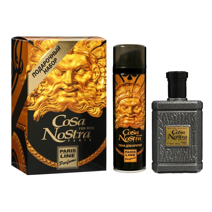 Подарочный набор Cosa Nostra. Туалетная вода и пена для бритья представлены в едином аромате. Cosa Nostra - туалетная вода для мужчин, живущих в ритме сегодняшнего дня, свободных, пылких, энергичных, завораживающих своим обаянием. Верхние ноты увлекают фруктовой свежестью, соблазнительный аккорд бергамота и шалфея покоряет сердце, а шлейф очаровывает многогранным звучанием пачули и сандала. Любимым ароматом Cosa Nostra теперь можно наслаждаться и при бритье. Пена для бритья для нормальной и чувствительной кожи с увлажняющими компонентами смягчает жесткую щетину, увлажняет кожу, обеспечивает мягкий и комфортный уход.
