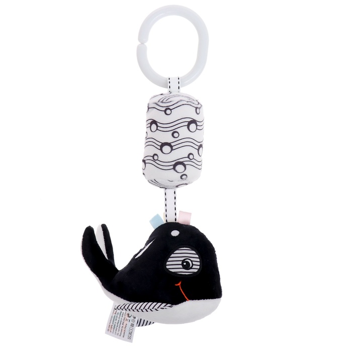 Подвеска помогает развивать слуховое и зрительное восприятие ребёнка. Игрушка легко крепится к любой поверхности, что делает её универсальным решением для дома и прогулок.