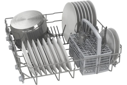Посудомоечная машина Bosch SMS4IKW51Q с 2 корзинами и отдельными лотками для чашек и столовых приборов вмещает 13 комплектов посуды. Энергосберегающий мотор снижает уровень шума при работе ПММ. Bosch SMS4IKW51Q с кнопочным управлением и дисплеем оснащена 5 программами и таймером отсрочки до 24 ч. Блокировка панели управления защищает заданные настройки от детей.