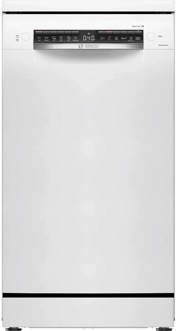 Посудомоечная машина Bosch SPS4HMW64Q делает прибор удачным решением для современных кухонь, где ценят чистые линии и функциональность. Корпус белого цвета гармонично сочетается с черной панелью управления, создавая контрастный акцент, который выглядит стильно и не кричит о себе. Внешние пропорции узкого формата (45 см шириной) обеспечивают компактность при сохранении вместительности до 10 комплектов посуды, а высота 84,5 см и глубина 60 см позволяют устройству удобно вписаться в нишу под столешницу или использовать как отдельностоящую единицу.