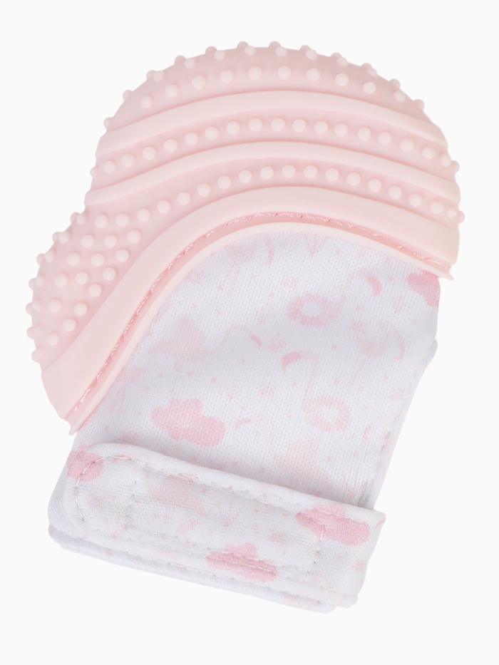 Прорезыватель на ручку для зубов «Фламинго» — удобный аксессуар для малышей в период прорезывания зубов. Он надевается на ручку ребёнка как мягкая варежка, не падает на пол и всегда остаётся рядом, когда малышу хочется что-то погрызть и почесать дёсны.