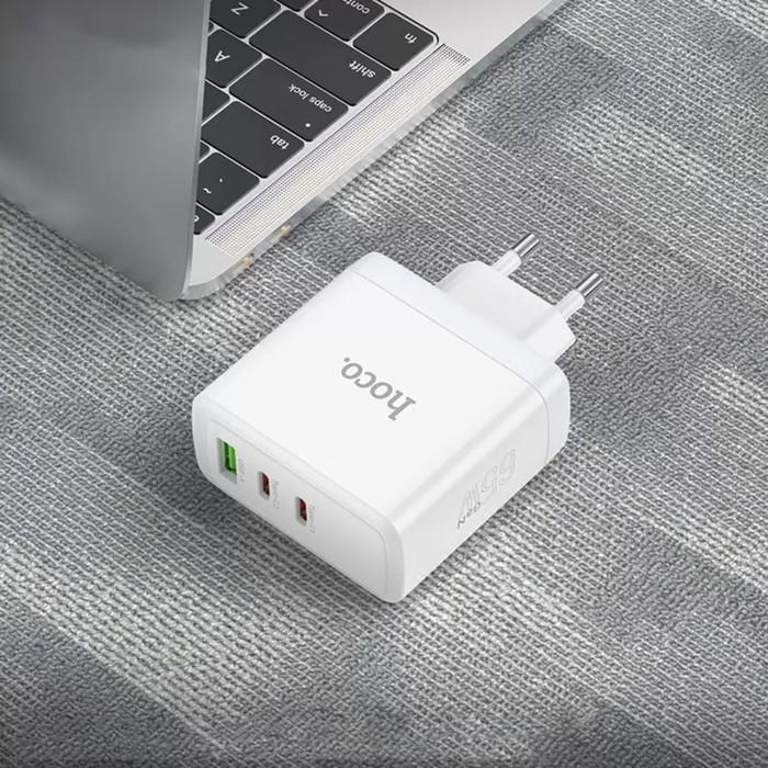 Сетевое зарядное устройство Hoco N30, USB/2Type-C, 3 A, белое