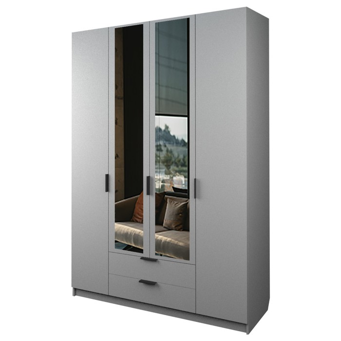 Шкаф четырёхдверный «Аллоджио. Экон», 2 ящика, с зеркалом, 1600×520×2300 мм, цвет серый шагрень