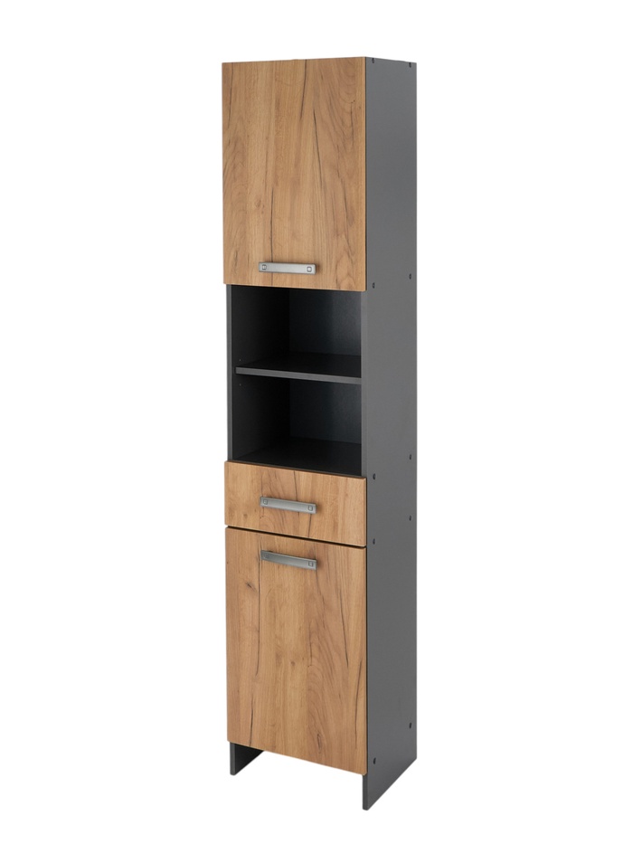 Шкаф – пенал для ванной комнаты «Пронто», 400×330×1850 мм, цвет графит/дуб золотой